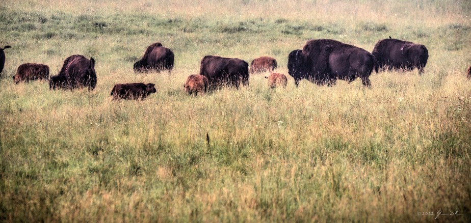 Bison are hard to image, I’ve found. Big, dark lumps lumbering around in lightly colored grass fields…