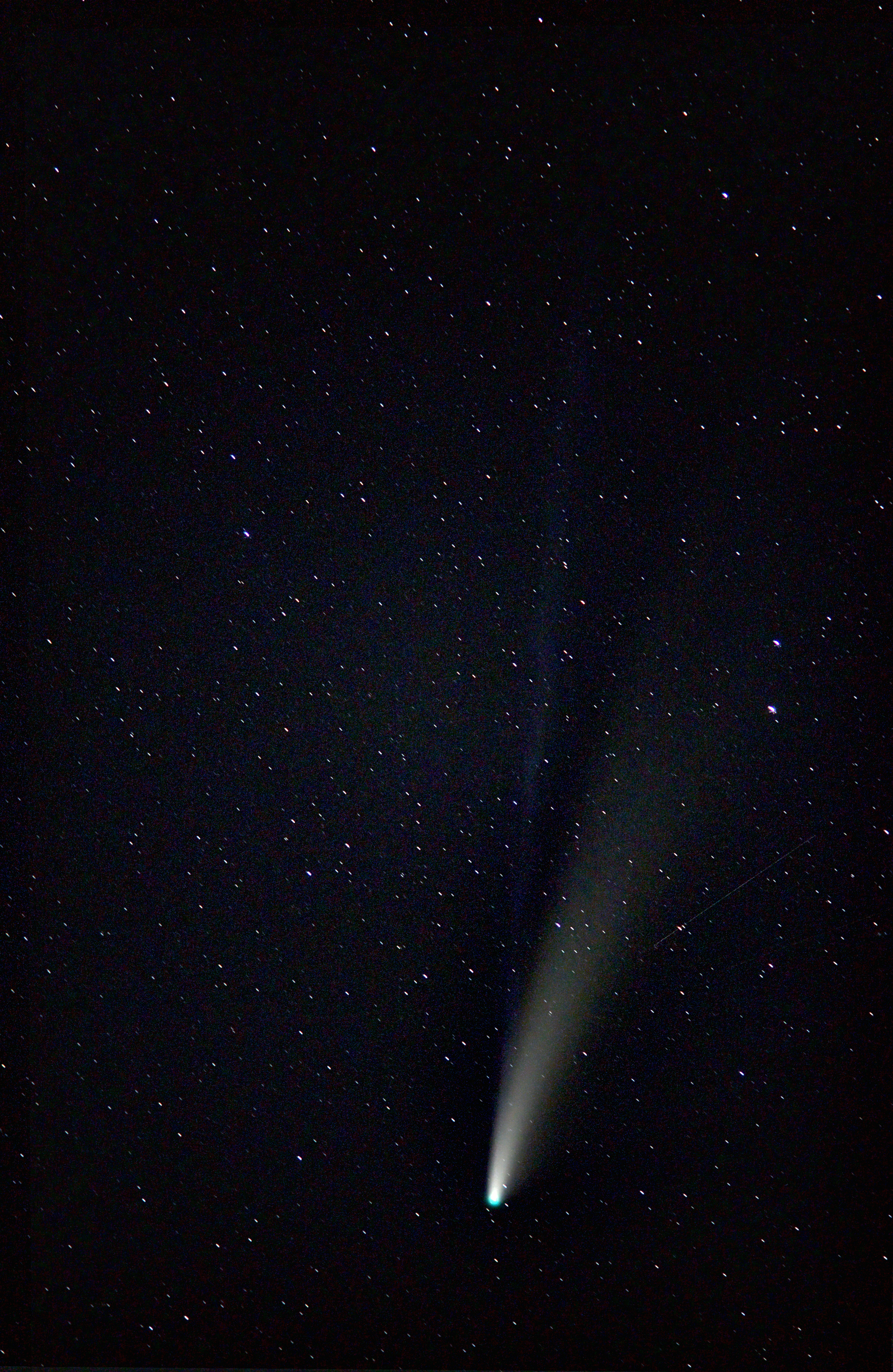 I captured this single, untracked image of Comet Neowise during the long summer of 2020, with a Nikon D750 DSLR, but with the same 200mm manual lens that I had captured Hale-Bopp two decades prior. The single image was exposed at ISO 4000 set at f/8 for 10 seconds.